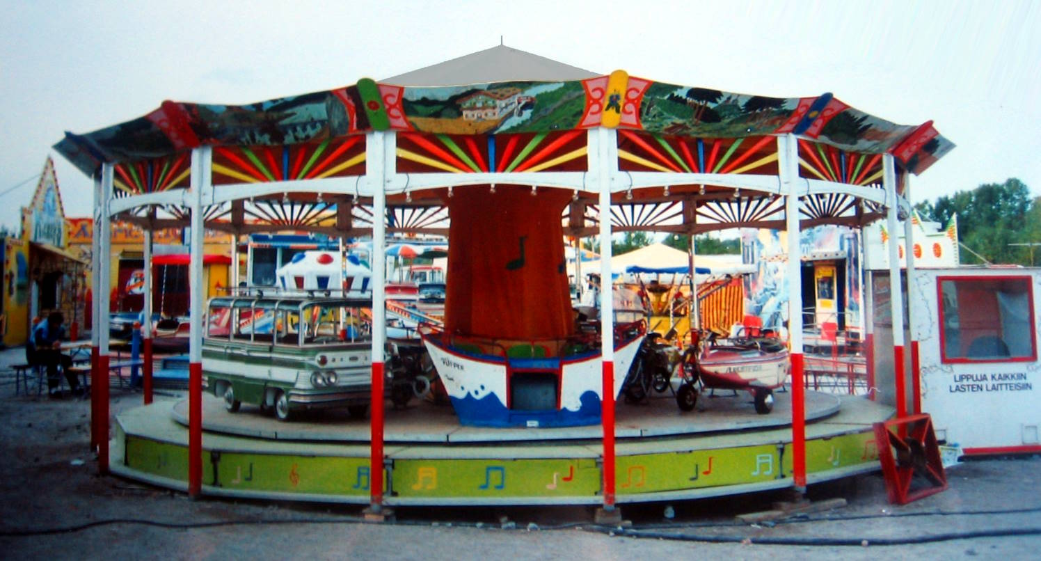 Tämä oli puusta rakennettu, Lulla-tyyppinen karuselli. Laite oli varustettu autoilla, moottoripyörillä ja veneillä. Karuselliin oli maalattu muun muassa nootteja. Valmistaja on belgialainen Melle L'Autopede Gent Gand.