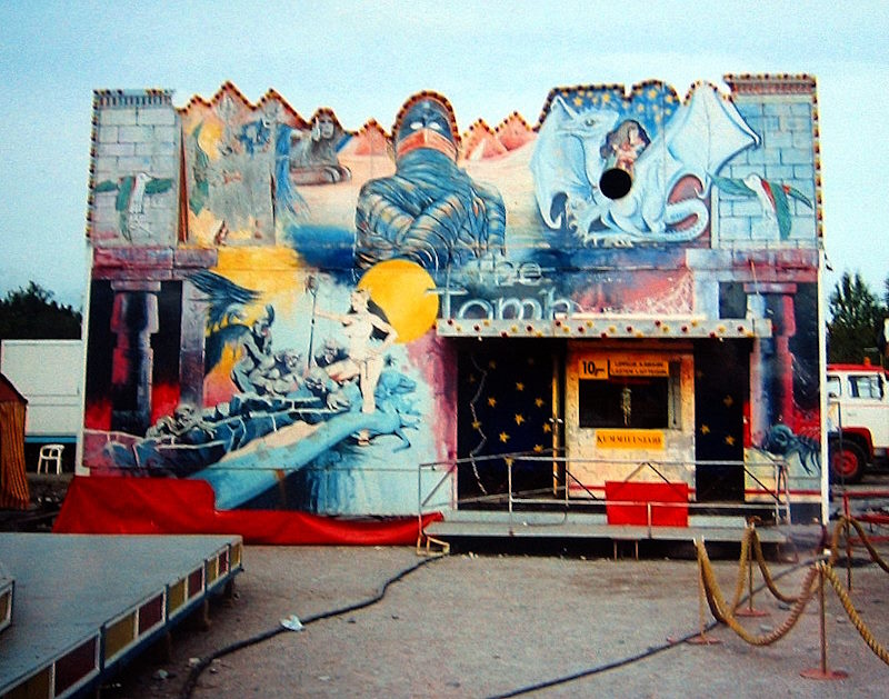 The Tomb oli tivolin käveltävä kauhukohde, joka mahtui ilman kasaamista käytännössä yhden kontin sisään. Talon sisällä ei ollut liikkuvia osia. Sen sijaan matkan varrelta löytyi mm. katosta roikkuvia naruja, vinoja lattioita, verkkojen takana pari vähäpukeista mallinukkea ja yläkerrassa pyöreä kurkistusikkuna ulos. Käytävät olivat tosi kapeita ja pimeitä. Portaat olivat jyrkkiä. Valmistajasta ei ole tietoa, mutta perustuen kuvaan kohde vaikuttaa jonkun itse tekemältä. The Tomb kuitenkin melko varmasti vuokrattiin tai ostettiin joltain tivolin käyttöön.
